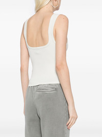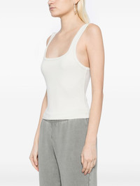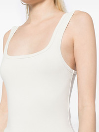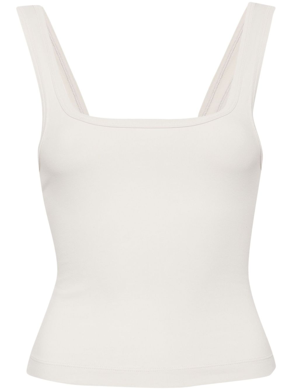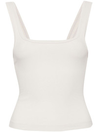square neck tank top Highlights - Rice white - Organic cotton blend - Jersey texture - Square neck - Sleeveless - Square open back - Straight hem Imported Composition Organic Cotton 90%, Spandex/Elastane 10% SIZE & FIT Model measurements Height 5 ft 9 in(1.76 m) Bust/Chest 31.1 in(79 cm) Hips 35.03 in(89 cm) Waist 24.4 in(62 cm) FittingInformation Designed for a slim fit that sits just away from the body offering a close yet comfortable fit Made from a midweight stretch fabric, this piece offers elasticity and flexibility when worn