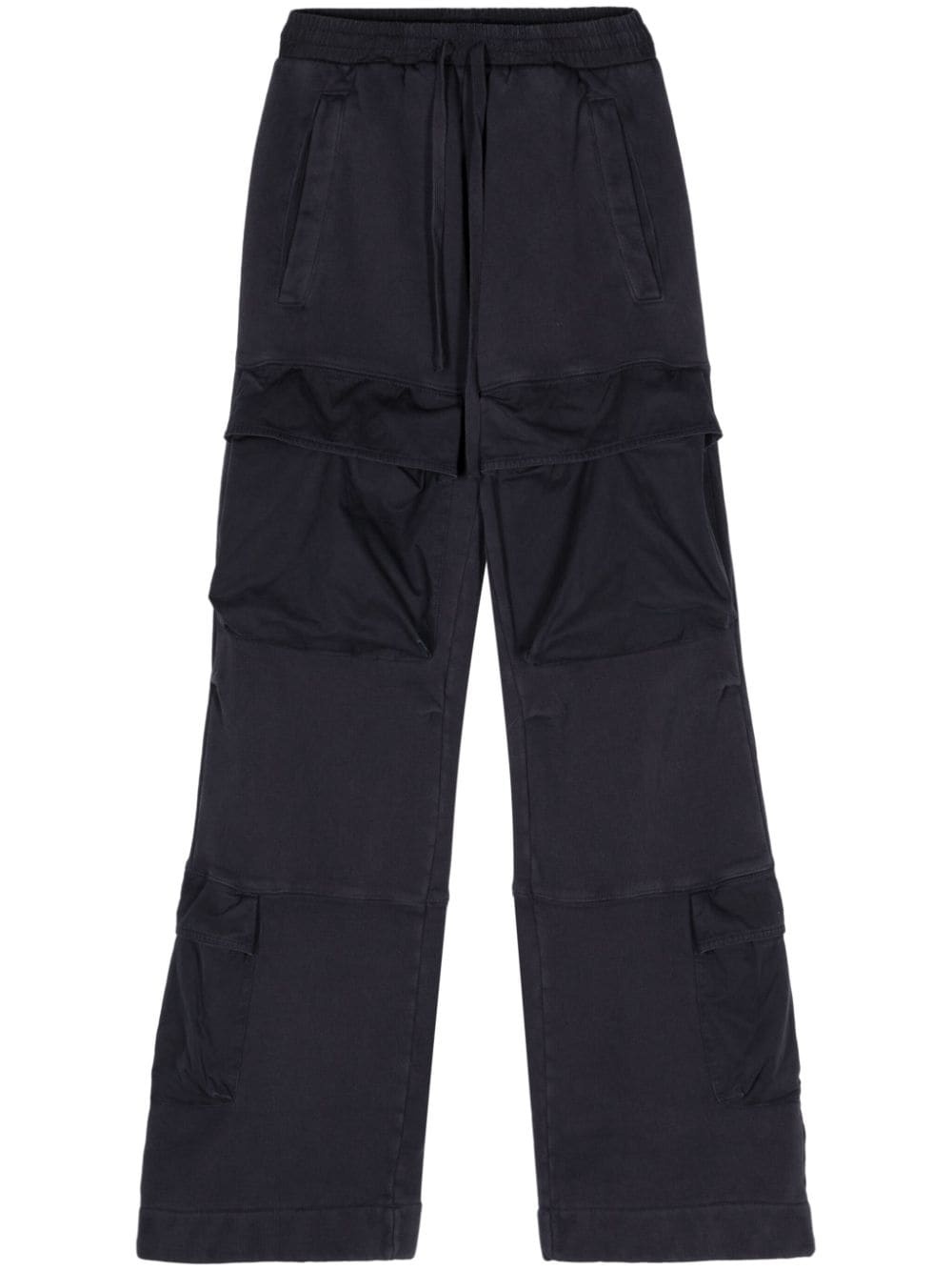 Utility mid-rise track trousers Highlights - Blue - Organic cotton - Jersey texture - Panelled design - Dart detailing - Mid-rise - Elasticated drawstring waistband - Two side welt pockets - Multiple cargo pockets - Two rear welt pockets - Wide leg - When buying this unisex item, keep in mind that it is graded in standard men's sizing. Imported Composition Organic Cotton 100%
