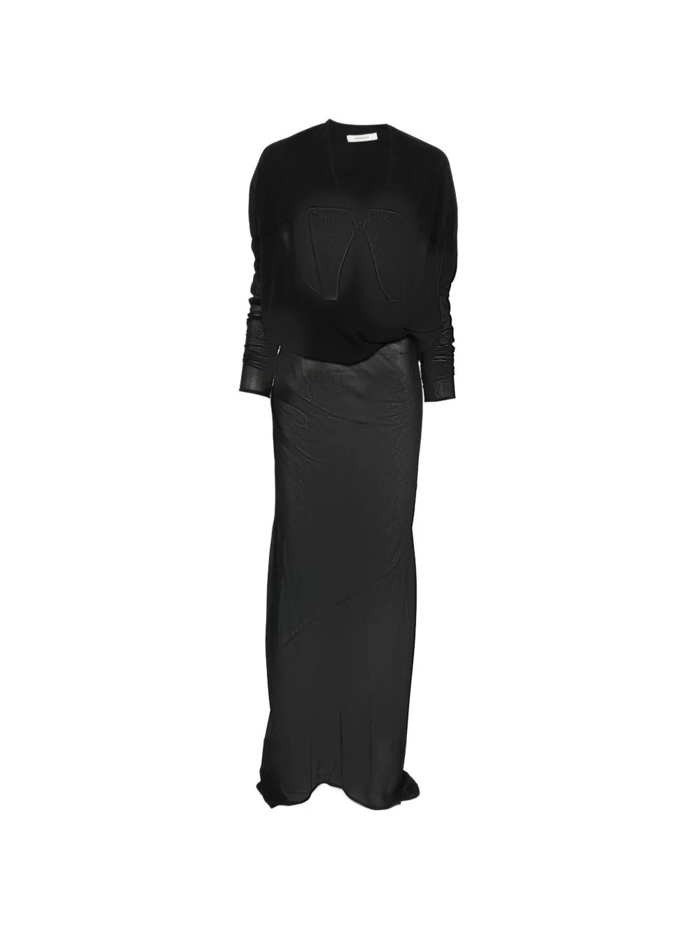 V-neck maxi dress Highlights - Black - Sheer finish - V-neck - Long sleeves - Wrap detail - Maxi length Imported Composition Polyester 100% Washing instructions Read Manufacturer Guidelines