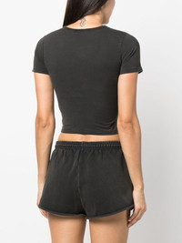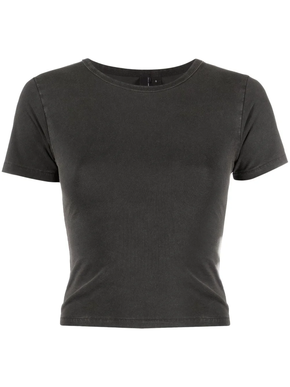 washed short-sleeved T-shirt Highlights - Black - Organic cotton - Washed - Cropped - Round neck - Short sleeves - Straight hem Imported Composition Organic Cotton 100% SIZE & FIT Model measurements Height 5 ft 11 in(1.8 m) Bust/Chest 33.07 in(84 cm) Hips 37.4 in(95 cm) Waist 25.19 in(64 cm) FittingInformation Designed for a slim fit that sits just away from the body offering a close yet comfortable fit Cropped in length Made from a midweight non-stretch fabric, this piece offers minimal elasticity when worn This piece fits true to size – take your usual size Washing instructions Machine Wash