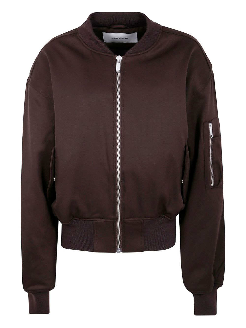 zip-fastening bomber jacket Highlights - Dark brown - Wool - Zip fastening - Flap pockets - Ribbed cuffs and hem Imported Composition Wool 100% Washing instructions Read Manufacturer Guidelines
