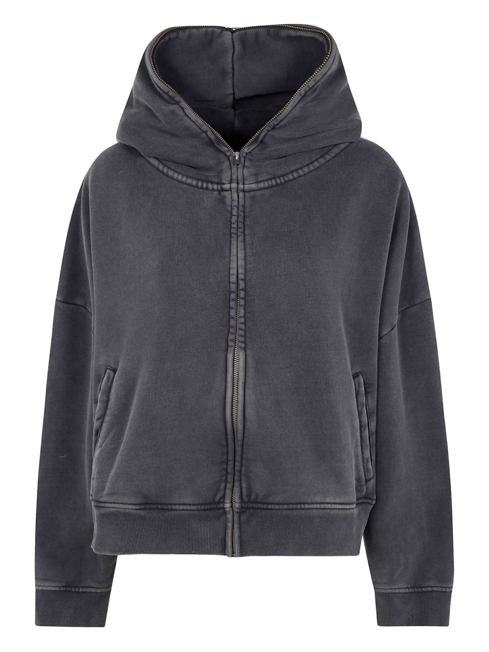 zip-fastening hoodie Highlights - Washed black - Zip fastening - Hooded neckline - Front pockets - Ribbed hem - Ribbed cuffs Imported Composition Organic Cotton 100% Washing instructions Read Manufacturer Guidelines