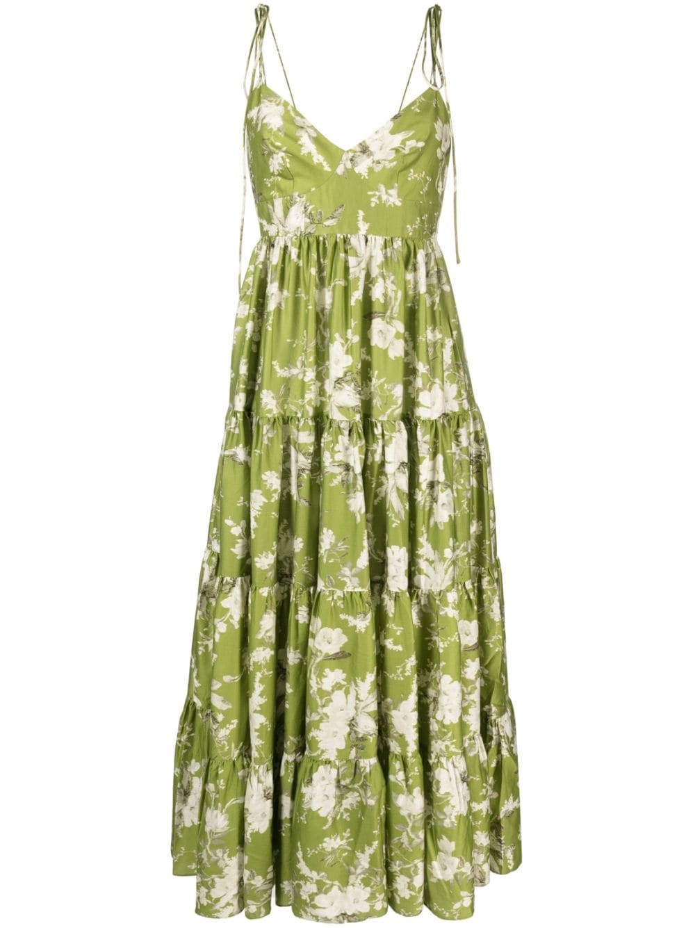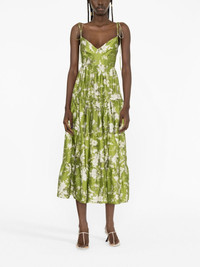 Azami Magnolia Garden-print dress Floral prints and motifs are the order of the day at Erdem, as shown by the Azami midi dress. It's crafted from cotton to a subtly gathered, tiered silhouette with slender shoulder straps and decorated with the Magnolia Garden pattern: a celebration of English blooms. Highlights - Olive green/off-white - Cotton - Flared - All-over floral print - V-neck - Double-strap design - Tiered skirt - Mid-length Imported Composition Cotton 100% SIZE & FIT Model measurements Height 5 ft 10 in(1.79 m) Bust/Chest 31.1 in(79 cm) Hips 35.03 in(89 cm) Waist 24.01 in(61 cm) Measurement HIPS 44.09 in(112 cm) LENGTH 51.57 in(131 cm) WAIST 28.34 in(72 cm) FittingInformation Designed for a close fit at the chest with a loose fit over the waist and hips Made from a lightweight non-stretch fabric This piece fits true to size – take your usual size Washing instructions Machine Wash