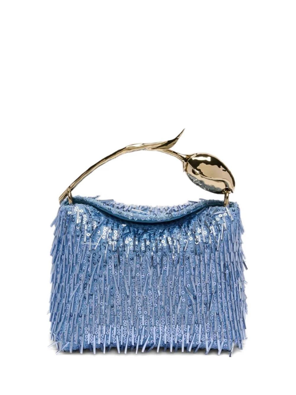 mini Bloom bag Highlights - Blue - Sequin embellishment - Fringed detailing - Gold-tone hardware - Detachable chain-link shoulder strap Made in Italy Composition Outer: Polyester 95%, Elastane 5% Top: Polyethylene Terephthalate (PET) 100% Lining: Kid Suede 100% Brass 100%