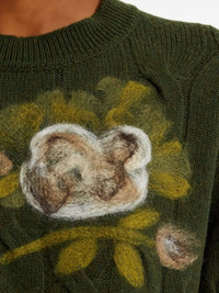 cable-knit floral-embroidered sweater Highlights - Green - Floral embellishment - Crew neck - Long sleeves Made in Italy Composition Outer: Wool 80%, Polyamide 20% Washing instructions Read Manufacturer Guidelines