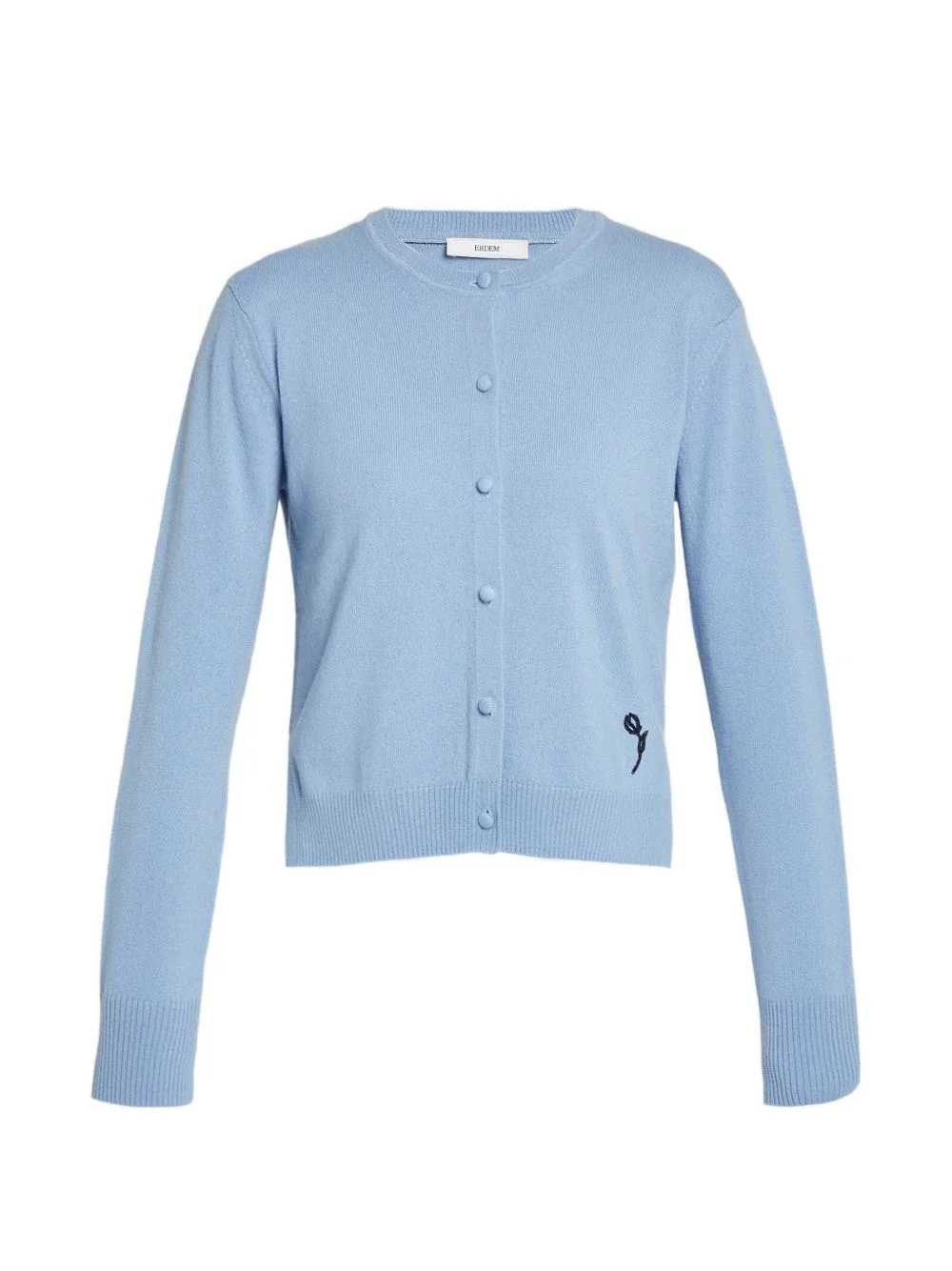 crew-neck cardigan Highlights - Powder blue - Crew neck - Button fastening - Embroidery - Ribbed hem - Ribbed cuffs Imported Composition Cashmere 100% Washing instructions Dry Clean Only