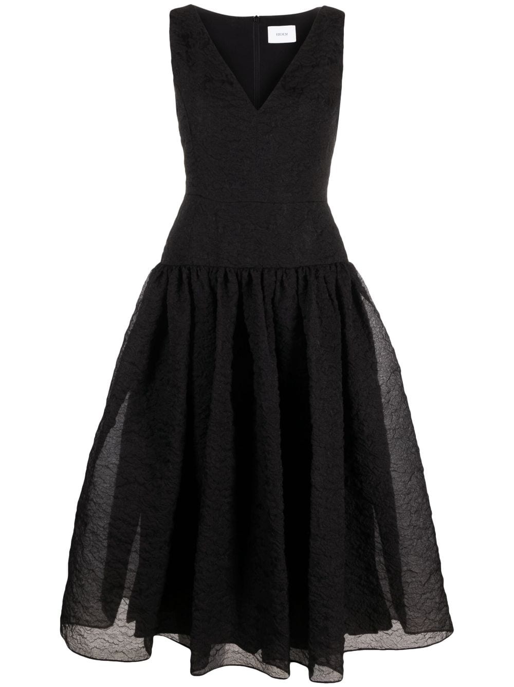 crinkled-effect silk flared dress Highlights - Jet black - Silk - Crinkled finish - Plunging v-neck - Sleeveless - Fitted waistline - Flared skirt - Straight hem - Mid-calf length Imported Composition Lining: Silk 100% Outer: Cotton 44%, Polyamide 36%, Polyester 20% SIZE & FIT Model measurements Height 5 ft 10 in(1.78 m) Bust/Chest 30.7 in(78 cm) Hips 34.64 in(88 cm) Waist 23.22 in(59 cm) FittingInformation Designed for a close fit at the chest and waist with a loose fit at the hip Made from a lightweight non-stretch fabric This piece fits true to size – take your usual size Washing instructions Dry Clean Only
