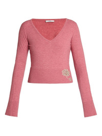 cropped jumper Highlights - Pink - V-neck - Crystal embellishment - Ribbed hem Imported Composition Outer: Polyamide 59%, Viscose 23%, Merino 10%, Cashmere 5%, Elastane 3% Lining: glass 55%, Brass 40%, Nylon 5% Washing instructions Dry Clean Only