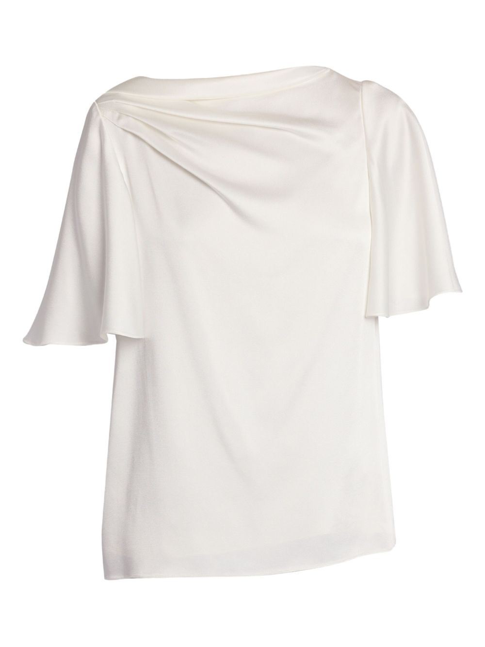draped-detail top Highlights - Ivory white - Draped front - Short flutter sleeves - Round neckline - Lightweight silhouette - Soft gathers Imported Composition Outer: Acetate 71%, Viscose 29% Lining: Silk 100%
