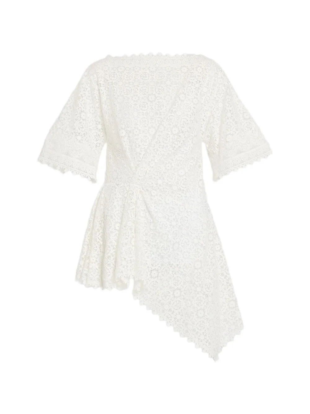 draped lace top Highlights - White - Lace - Short sleeve - Asymmetric hem - Floral pattern - Round neck Made In United Kingdom Composition Cotton 100% Washing instructions Dry Clean Only