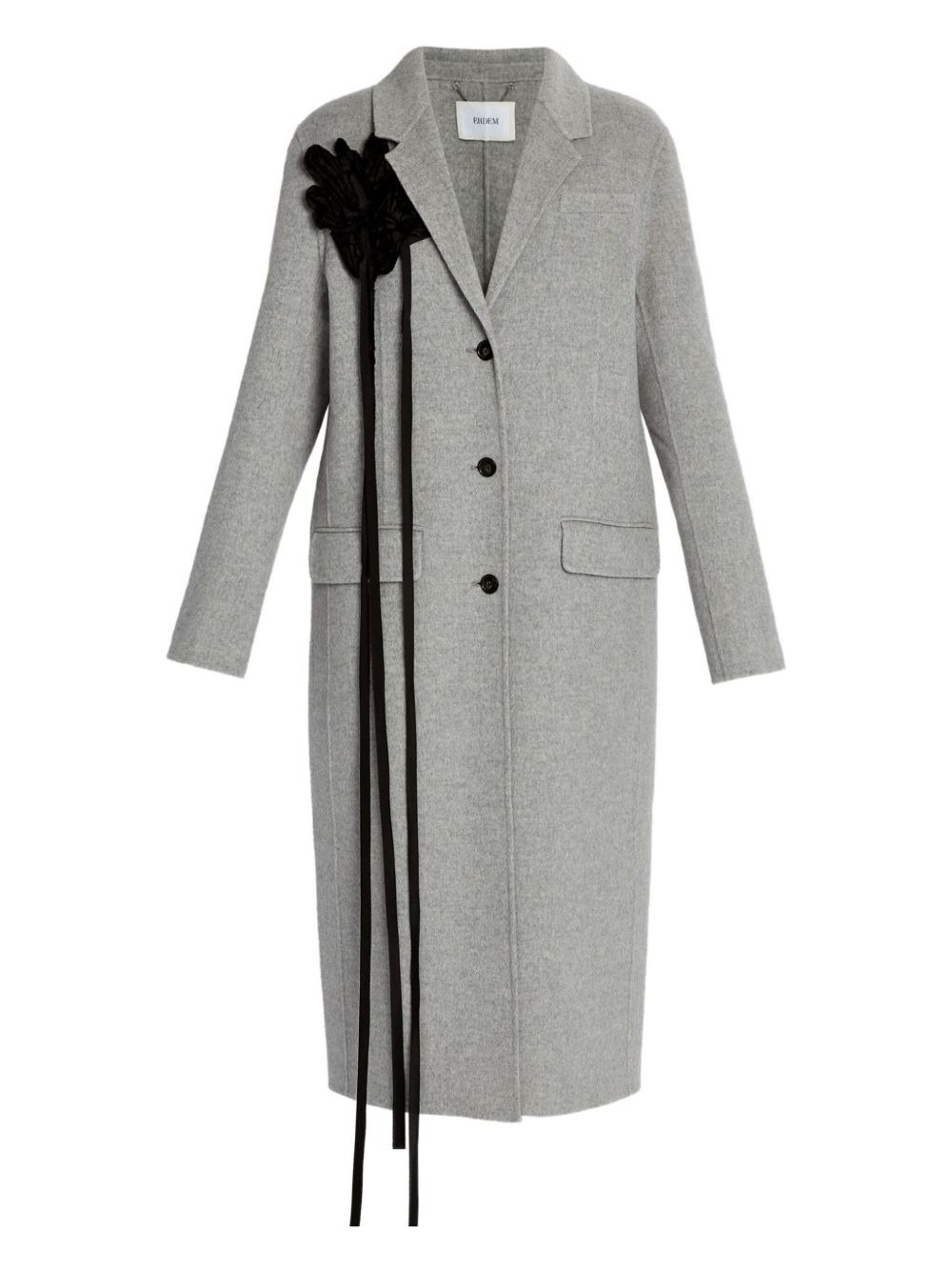 floral-applique tailored coat Highlights - Grey - Wool - Three-button fastening - Flower embellishment - Long hanging straps - Flap pockets Imported Composition Wool 100%, Silk 90%, Polyamide 10% Washing instructions Dry Clean Only
