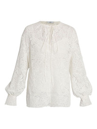 floral-embroidered blouse Highlights - White - Drawstring neck - Long puff sleeves - Elasticated cuffs Imported Composition Polyamide 100%, Cotton 60%, Nylon 40% Washing instructions Dry Clean Only
