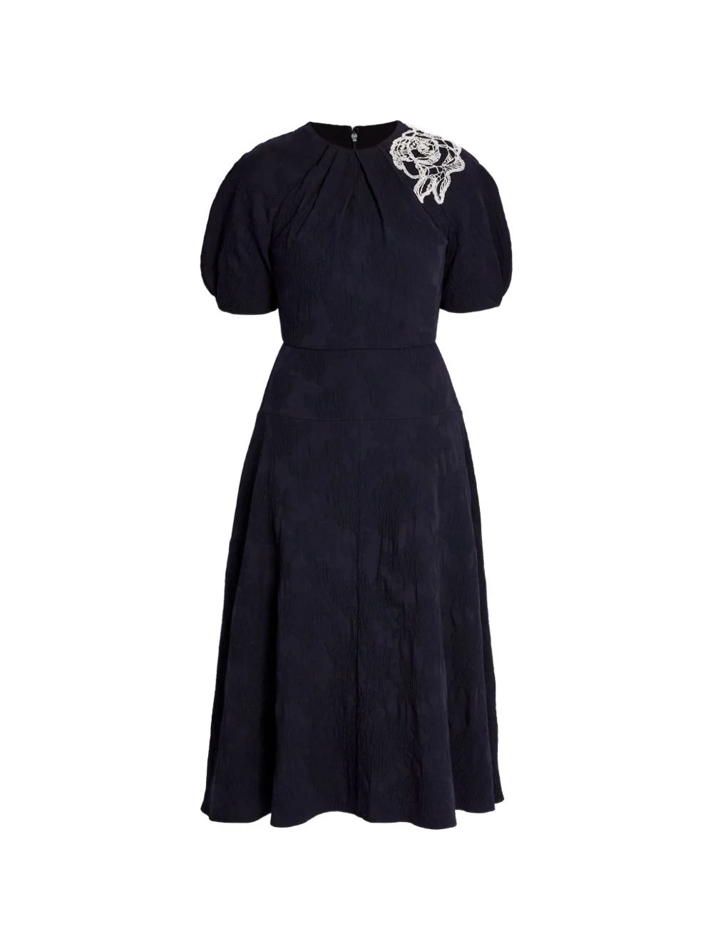 floral-embroidered midi dress Highlights - Navy blue - Short puff sleeves - Embroidered rose detail - Round neck Imported Composition Outer: Cotton 87%, Polyester 13% Lining: Cotton 100% Washing instructions Dry Clean Only