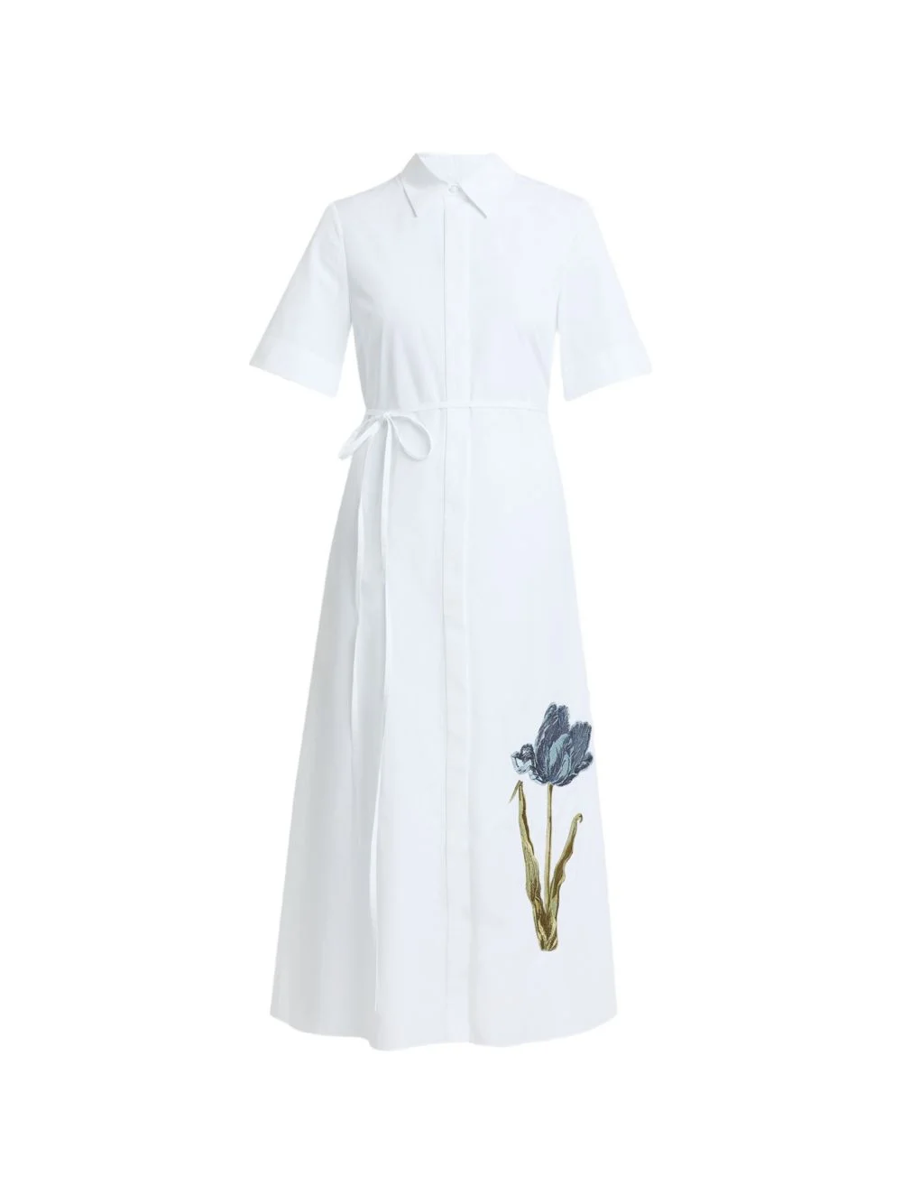 floral-embroidered tie-waist midi shirt dress Highlights - White - Floral embroidery - Tie belt - Short sleeves - Midi length - Collar Imported Composition Organic Cotton 100% Washing instructions Dry Clean Only