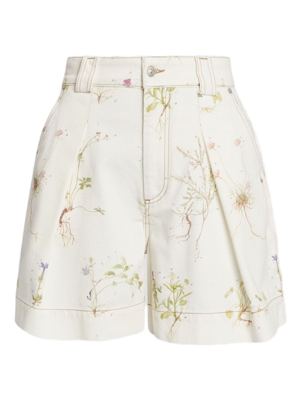 floral-print denim shorts Highlights - White - Concealed fly and button fastening - Belt loops - Two diagonal pockets to the sides - Two rear patch pockets Imported Composition Outer: Cotton 100% Lining: Cotton 100%
