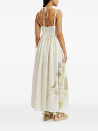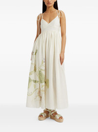 floral-print midi dress Highlights - White - V-neck - Tie-fastening straps - Sleeveless - Concealed rear hook and zip fastening - Tiered skirt - Unlined - Mid-length Imported Composition Linen/Flax 100%