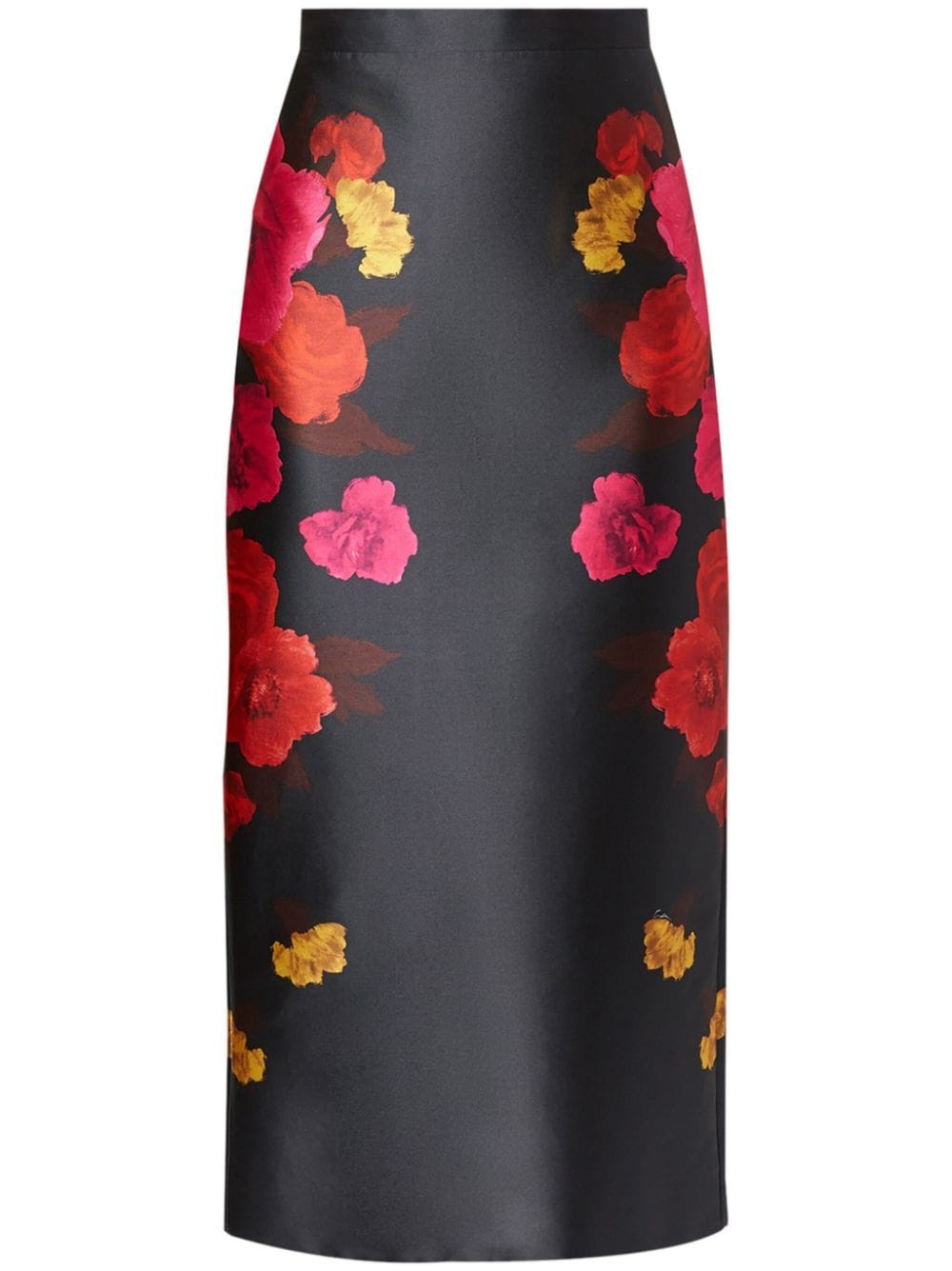 floral-print midi pencil skirt Highlights - Black/multicolour - Cotton blend - All-over floral print - High-waisted - Rear zip fastening - Straight hem - Silk lining Imported Composition Outer: Cotton 59%, Polyester 41% Lining: Silk 100% Washing instructions Dry Clean Only