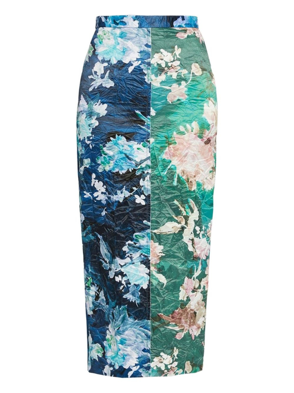 floral-print midi skirt Highlights - Blue/ green - Floral print - Textured fabric - Pencil shape Imported Composition Outer: Polyester 100% Lining: Silk 100% Washing instructions Read Manufacturer Guidelines