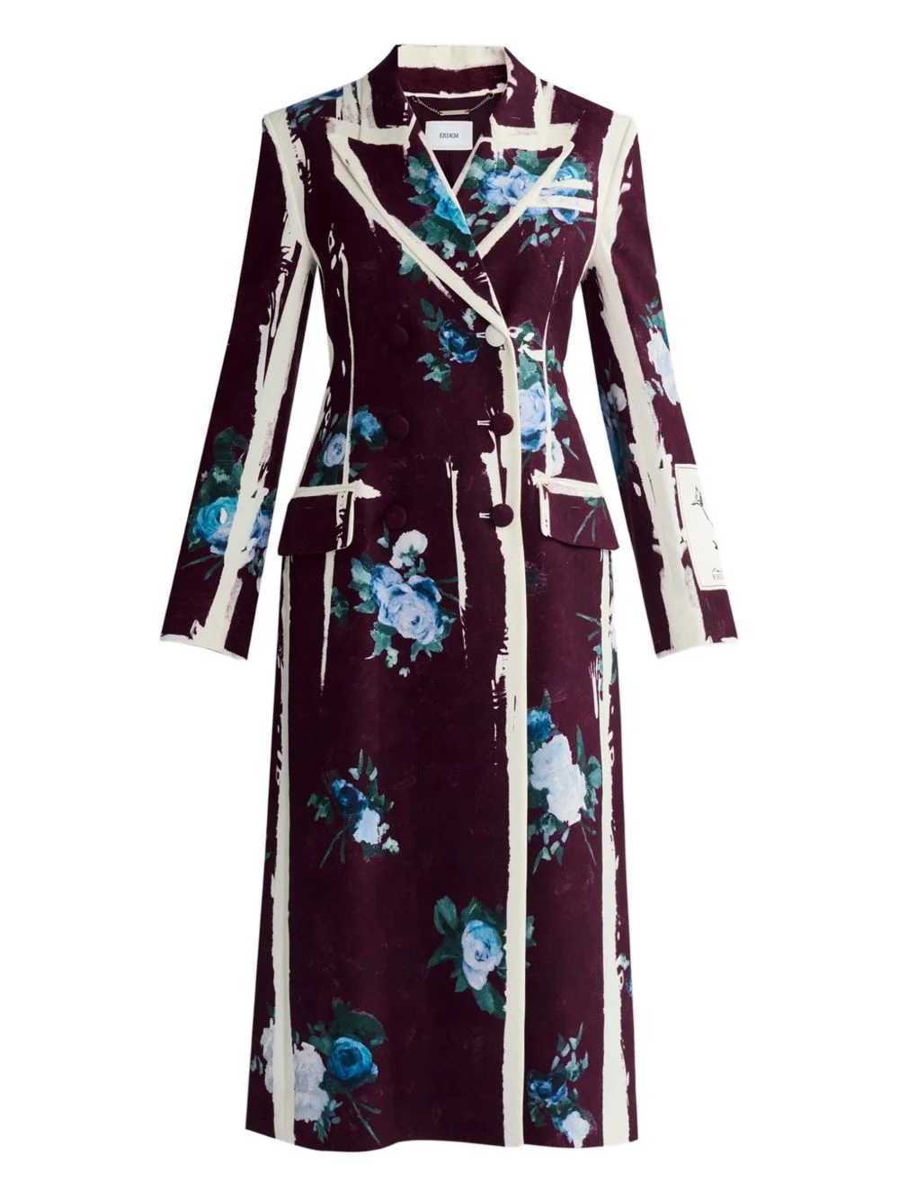 floral-print striped coat Highlights - Mulberry red - Floral print - Striped pattern - Double-breasted - Peak lapels - Flap pockets Made in United Kingdom Composition Outer: Viscose 100% Lining: Silk 100% Viscose 100% Washing instructions Dry Clean Only
