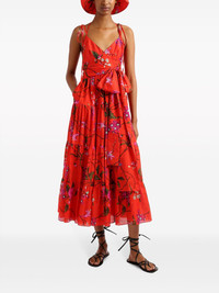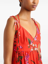 floral-print tiered dress Highlights - Poppy red/multicolour - Cotton-linen blend - All-over floral print - Gathered detailing - V-neck - Halterneck tie fastening - Tie-fastening spaghetti straps - Detachable waist belt - Tiered skirt - Straight hem - Mid-length Imported Composition Outer: Cotton 70%, Linen/Flax 30% Lining: Cotton 100% SIZE & FIT Measurement HIPS 37.79 in(96 cm) LENGTH 51.96 in(132 cm) WAIST 25.98 in(66 cm) Washing instructions Read Manufacturer Guidelines