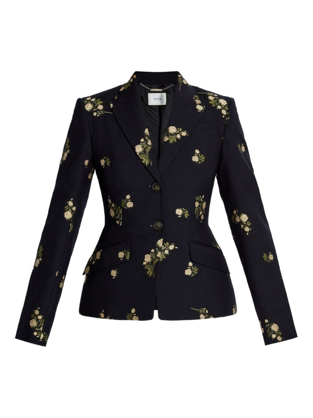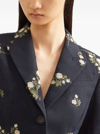 floral single-breasted blazer Highlights - Navy blue - Floral embroidery - Single-breasted closure - Two-button fastening - Flap pockets - Fitted silhouette Made in Italy Composition Outer: Virgin Wool 88%, Wool 50%, Viscose 50%, Cotton 12% Lining: Cupro 100% Washing instructions Dry Clean Only
