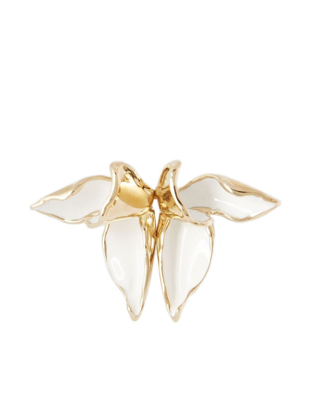 Flower gold-tone and enamel brooch White