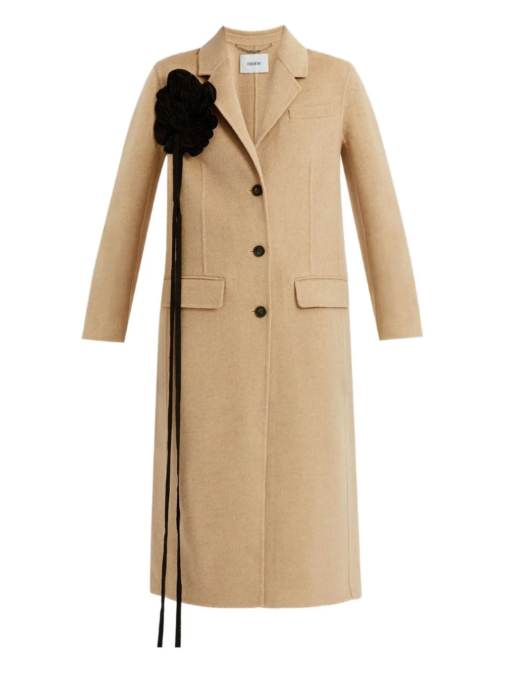 flower-embellished wool coat Highlights - Beige - Button fastening - Notched lapels Imported Composition Wool 100%, Silk 90%, Polyamide 10% Washing instructions Dry Clean Only