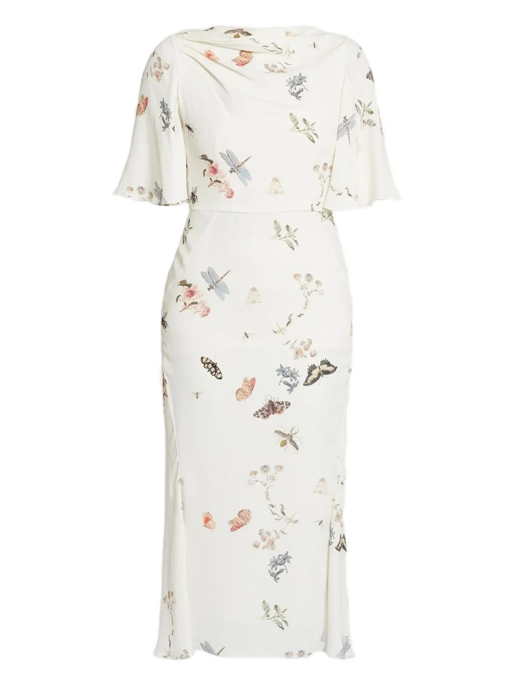 flutter-sleeve printed midi dress Highlights - Ivory - Floral print - Flutter sleeves - Midi length Imported Composition Outer: Viscose 100% Lining: Silk 100% Washing instructions Dry Clean Only