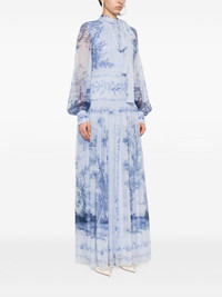 graphic-print silk dress Highlights - Light blue - Silk - Voile - All-over graphic print - Tie-fastening collar - Semi-sheer long sleeves - Buttoned-cuff sleeves - Keyhole detail to the front - Pleat detailing - Floor-length - Partial lining - Concealed rear hook and zip fastening Imported Composition Outer: Silk 100% Lining: Acetate 75%, Silk 25% SIZE & FIT Model measurements Height 5 ft 11 in(1.8 m) Bust/Chest 33.07 in(84 cm) Hips 37 in(94 cm) Waist 25.59 in(65 cm) FittingInformation Designed for a slim fit that sits just away from the body offering a close yet comfortable fit Made from a lightweight non-stretch fabric This piece fits true to size – take your usual size