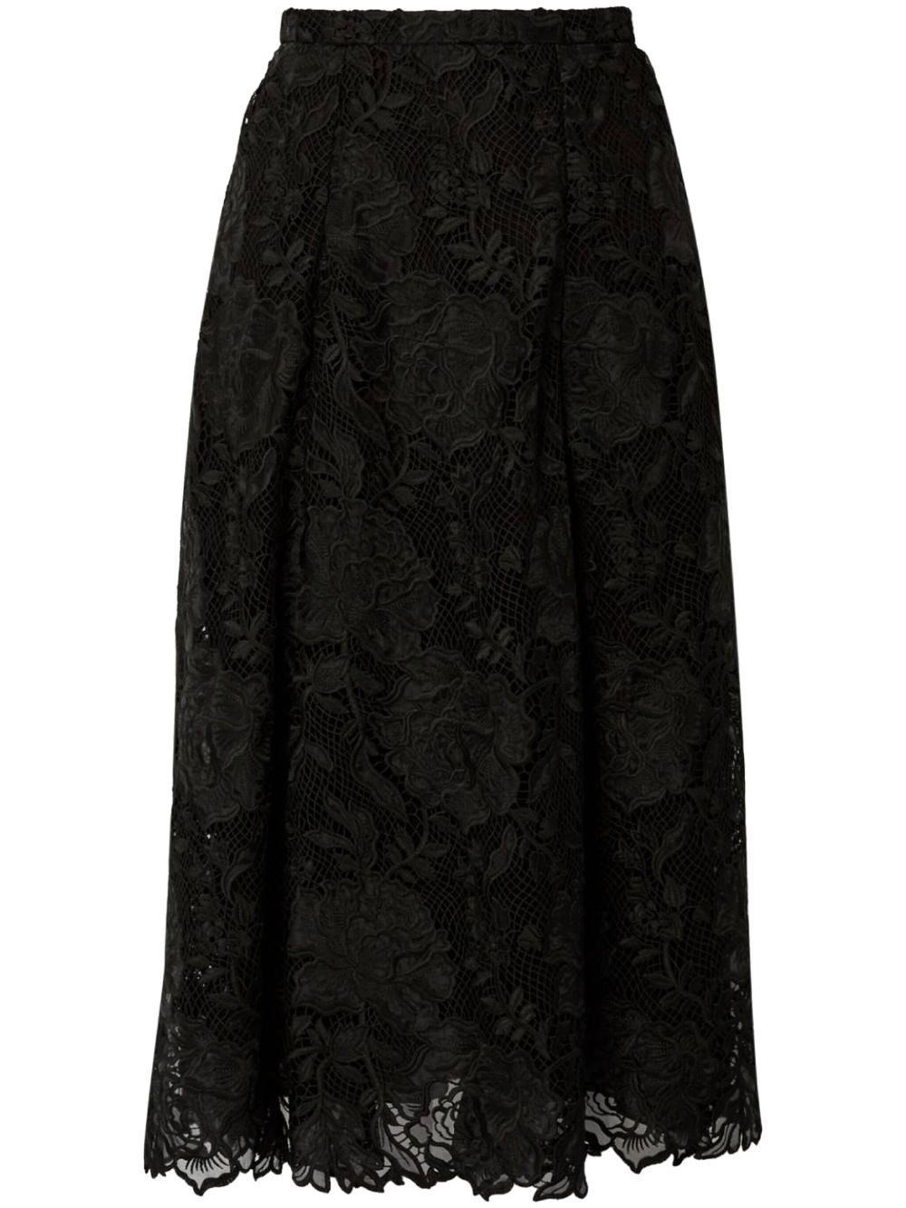 guipure-lace midi skirt Highlights - Black - Concealed rear hook and zip fastening - Full lining - Scallop hem Made in United Kingdom Composition Polyester 100% SIZE & FIT FittingInformation This midi-length skirt is intended to be worn high on the waist