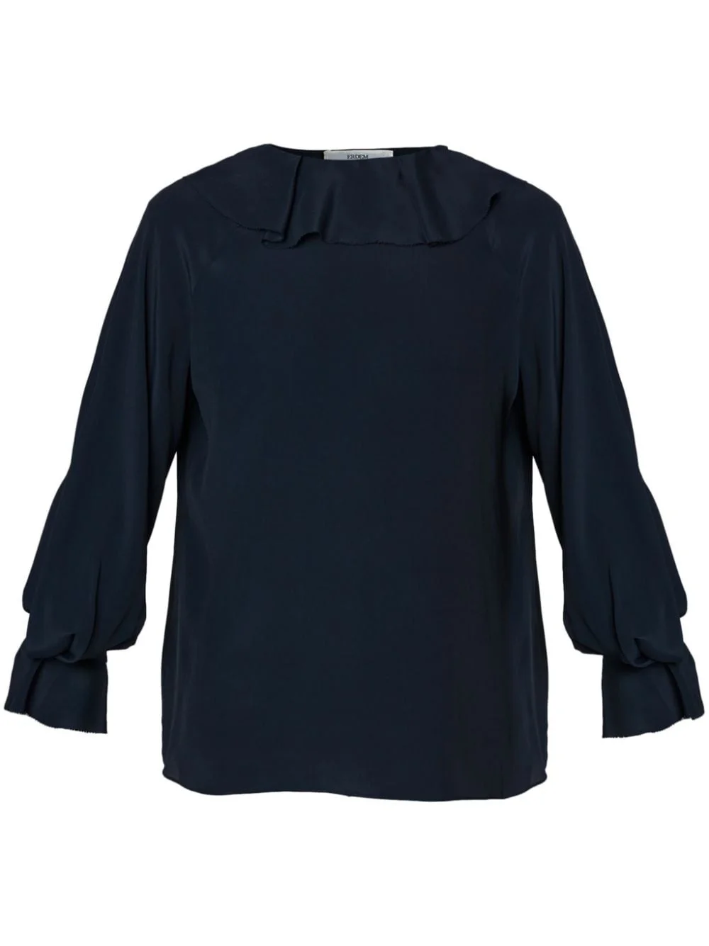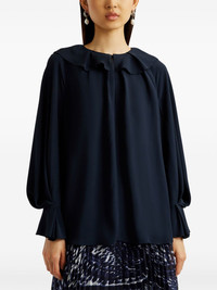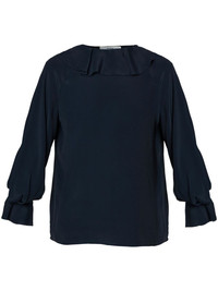 long-sleeved blouse Highlights - Navy blue - Long sleeves - Bishop sleeves - Ruffle cuffs - Pleated collar Imported Composition Acetate 68%, Silk 32% SIZE & FIT FittingInformation Designed to be unstructured, offering a loose fit throughout