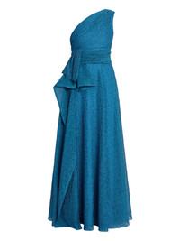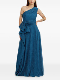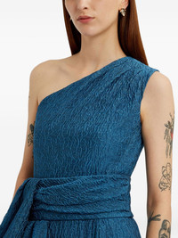one-shoulder crinkled gown Highlights - Blue - One-shoulder neckline - Crinkled finish - Tied waist - Floor-length skirt Made in United Kingdom Composition Outer: Nylon 65%, Polyester 35% Lining: Silk 100% Washing instructions Dry Clean Only