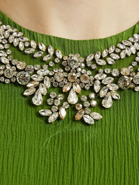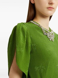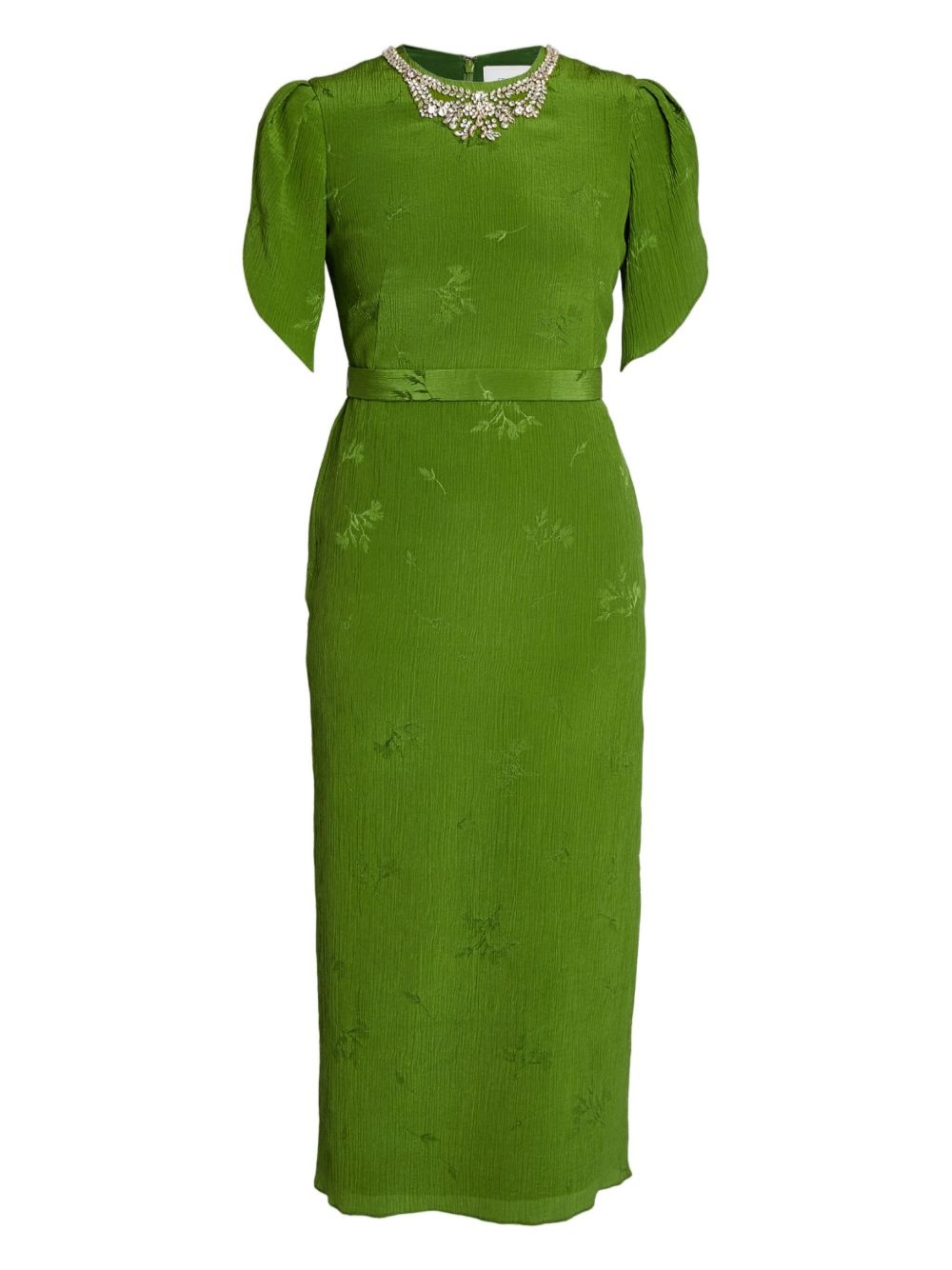 puff-sleeve midi dress Highlights - Bright green - Floral pattern - Jewel embellishment - Fitted waist - Short puff sleeves - Back zip fastening Imported Composition Outer: Silk 66%, glass 62%, Cotton 34%, Brass 25%, Nylon 10%, Polyester 3% Lining: Silk 100% Washing instructions Dry Clean Only