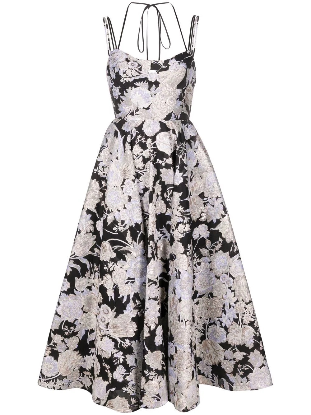 Rea floral-jacquard flared dress Erdem's elevated take on florals comes in this jacquard pattern of ivory and beige flowers against a sophisticated black background. The classic A-line silhouette is finished with thin straps and a halterneck fastening for an added delicate element. Made in United Kingdom Composition Outer: Polyester 58%, Silk 21%, Cotton 21% Lining: Cotton 100% SIZE & FIT Model measurements Height 5 ft 10 in(1.79 m) Bust/Chest 30.31 in(77 cm) Hips 33.85 in(86 cm) Waist 25.59 in(65 cm) Measurement LENGTH 50.78 in(129 cm)