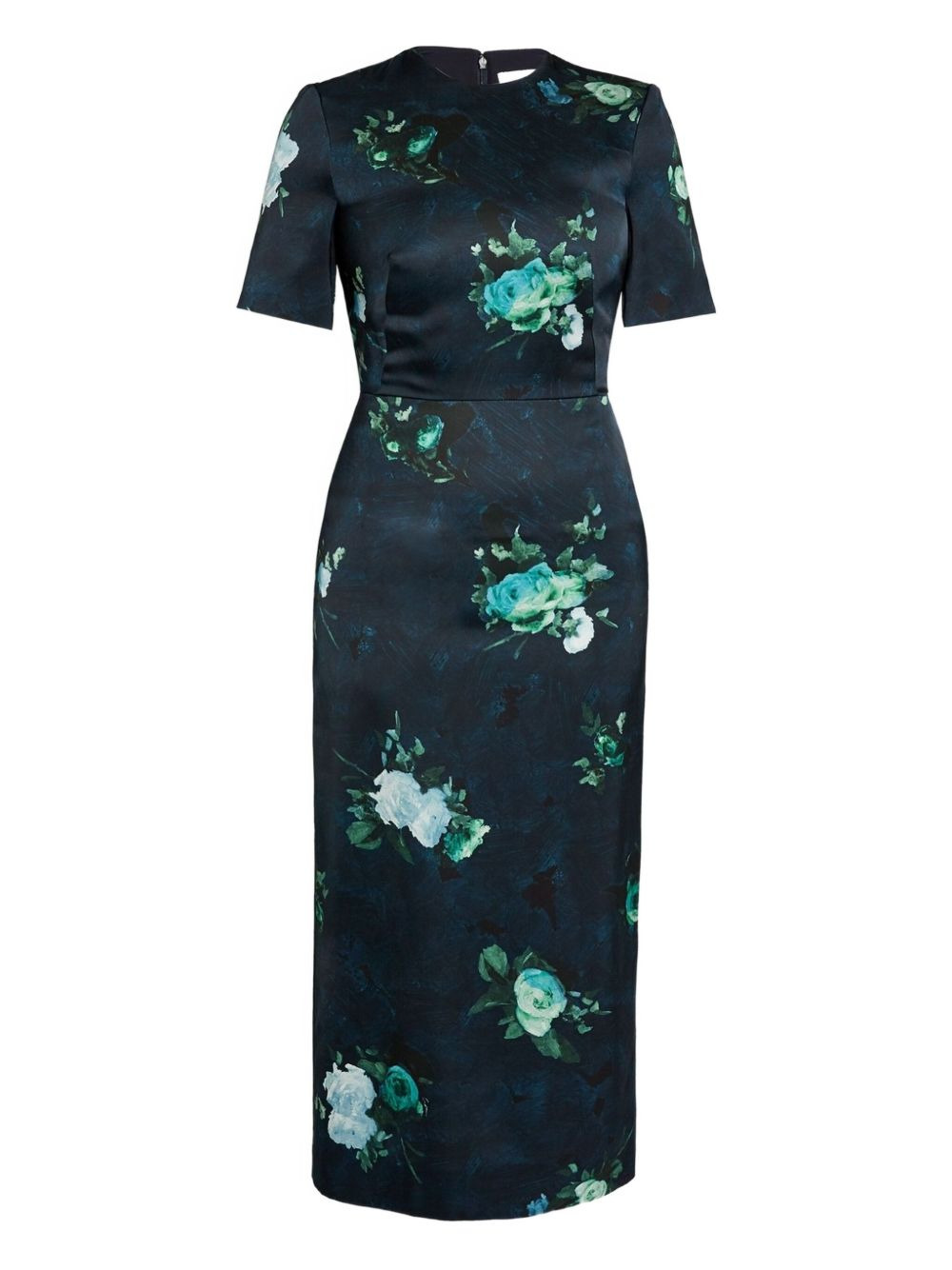 rose-print short-sleeve dress Highlights - Navy blue - Rose print - Short sleeves - Round neck - Midi length - Concealed zip fastening Imported Composition Outer: Viscose 100% Lining: Silk 100% Washing instructions Read Manufacturer Guidelines