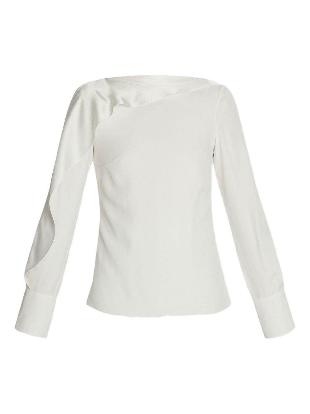 ruffle-detail long-sleeve top Highlights - Off-white - Slash neck - Asymmetrical ruffle detail - Long sleeves - Cuff details Imported Composition Outer: Acetate 71%, Viscose 29% Lining: Silk 100% Washing instructions Dry Clean Only
