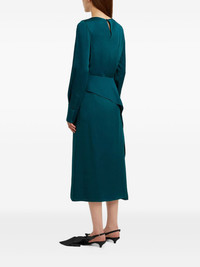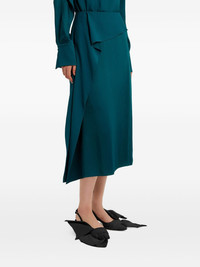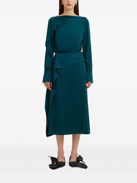 ruffled midi skirt Highlights - Teal - Asymmetrical ruffle detail - High waist - A-line shape - Mid length - Gathered fabric Imported Composition Outer: Acetate 71%, Viscose 29% Lining: Silk 100% Washing instructions Dry Clean Only
