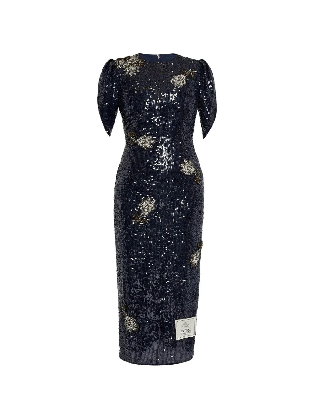 sequined midi dress Highlights - Dark blue - Sequin design - Short sleeves - Zip fastening - Fitted silhouette Imported Composition Sequin 100% Washing instructions Read Manufacturer Guidelines
