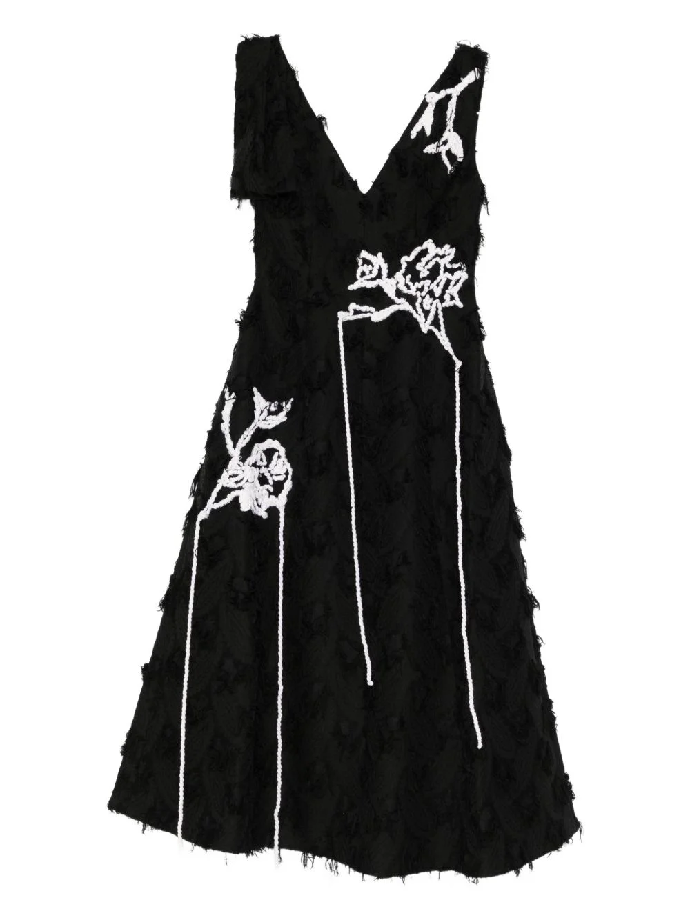 sleeveless midi dress Highlights - Black - Floral detail - V-neck - Sleeveless Imported Composition Outer: Viscose 95%, Polyamide 5% Lining: Silk 100% SIZE & FIT Model measurements Height 5 ft 11 in(1.8 m) Bust/Chest 32.28 in(82 cm) Hips 36.22 in(92 cm) Waist 25.19 in(64 cm) Washing instructions Read Manufacturer Guidelines