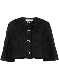 textured cropped jacket Highlights - Black - Silk - Textured finish - Crystal embellishment - Pearl detailing - Crew neck - Front button fastening - Half-length sleeves - Cropped - Straight hem Imported Composition Outer: Polyester 83%, Polyamide 17% Lining: Silk 100% SIZE & FIT Model measurements Height 5 ft 10 in(1.78 m) Bust/Chest 31.49 in(80 cm) Hips 36.22 in(92 cm) Waist 25.59 in(65 cm) FittingInformation Designed for a boxy fit, intended for a loose fit throughout Made from a midweight non-stretch fabric This piece fits true to size – take your usual size Washing instructions Dry Clean Only