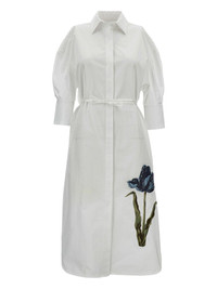 tulip-embroidered dress Highlights - White - Tulip detail - Shirt collar - Half-length sleeves - Button fastening - Tie belt Imported Composition Cotton 100% Washing instructions Read Manufacturer Guidelines