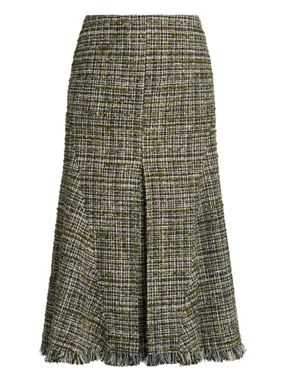 tweed pencil midi skirt Highlights - Green - Tweed - Fringed hem - Pleated front - Pencil shape - Mid-length Imported Composition Outer: Acrylic 30%, Cotton 20%, Recycled Cotton 17%, Polyester 11%, Polyamide 7%, Virgin Wool 7%, Wool 4%, Other fibres 1% Lining: Silk 100%