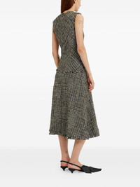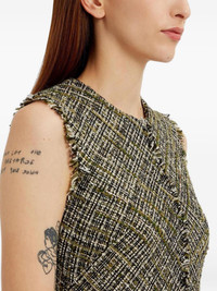 tweed sleeveless midi dress Highlights - Green - Tweed texture - Frayed edges - Sleeveless design - Rear zip fastening - A-line skirt Imported Composition Outer: Acrylic 30%, Cotton 20%, Recycled Cotton 17%, Polyester 11%, Polyamide 7%, Virgin Wool 7%, Wool 4%, Recycled Polyester 3%, Other fibres 1% Lining: Silk 100% Washing instructions Dry Clean Only