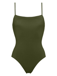 Aquarelle square-neck swimsuit Highlights - Green - Stretch-design - Square neck - Square open back - Sleeveless - Be mindful to try on swimwear over your own garments. Made in France Composition Polyamide 84%, Spandex/Elastane 16% SIZE & FIT FittingInformation This piece fits small – take one size up
