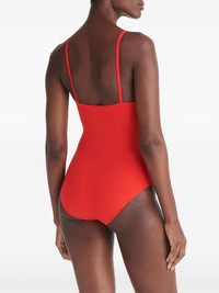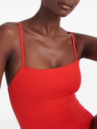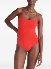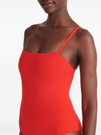 Aquarelle square-neck swimsuit Highlights - Cardinal red - Stretch-design - Square neck - Square open back - Sleeveless - Be mindful to try on swimwear over your own garments. Made in France Composition Polyamide 84%, Spandex/Elastane 16% SIZE & FIT FittingInformation This piece fits small – take one size up