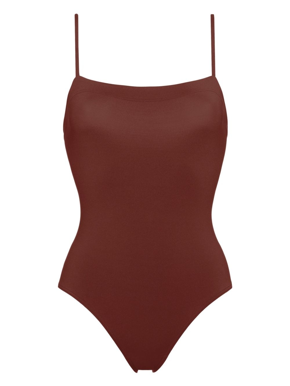 Aquarelle swimsuit Highlights - Brown - Scoop neck - Spaghetti straps - Be mindful to try on swimwear over your own garments. Made in France Composition Polyamide 84%, Spandex/Elastane 16% SIZE & FIT FittingInformation This piece fits small – take one size up