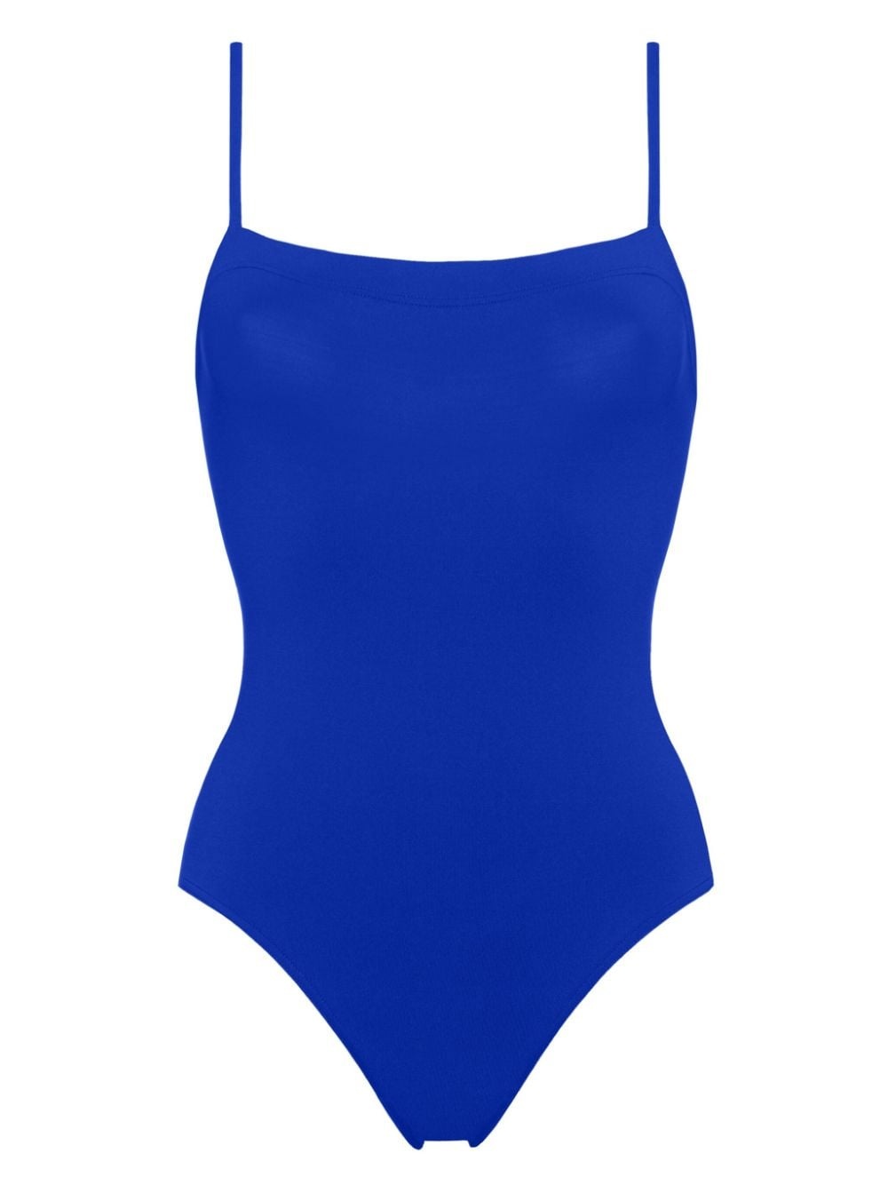 Aquarelle tank swimsuit ERES' timeless aesthetic is reflected in the clean lines of the Aquarelle swimsuit from the AW23 collection. Presented in a blue hue, it's crafted from a sculpting swim fabric and embraces simplicity with its square neck and slender straps. Highlights - Royal blue - Stretch-design - Spaghetti straps - Square neck - Sleeveless - Be mindful to try on swimwear over your own garments. Made in France Composition Polyamide 84%, Spandex/Elastane 16% SIZE & FIT FittingInformation Designed to offer medium brief coverage This piece fits small – take one size up Measurement LENGTH 22.24 in(56.5 cm) WAIST 23.62 in(60 cm) BUST 22.44 in(57 cm) Washing instructions Machine Wash