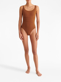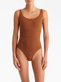 Asia scoop-back swimsuit French label ERES is known for creating elegant designs through a combination of style and technique. An exemplar of said aesthetic, this one-piece swimsuit features a brown colourway and minimalist scoop-back silhouette for a timeless feel. Highlights - Light brown - Stretch-design - Scoop neck - Sleeveless - Scoop back - Be mindful to try on swimwear over your own garments. Made in France Composition Polyamide 84%, Spandex/Elastane 16% SIZE & FIT Measurement LENGTH 29.13 in(74 cm) BUST 29.13 in(74 cm) FittingInformation Designed to offer medium brief coverage This piece fits small – take one size up Washing instructions Machine Wash