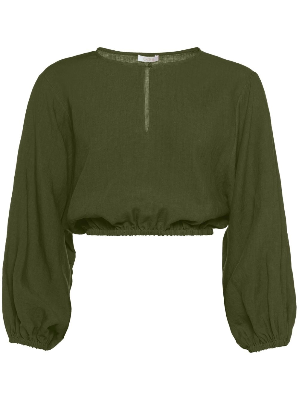 Auguste top Highlights - Fern green - Linen/flax - Keyhole neck - Long puff sleeves - Elasticated cuffs - Elasticated hem - Cropped Imported Composition Linen/Flax 100%
