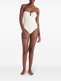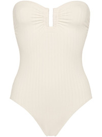 Bossa Nova ribbed swimsuit Highlights - Off-white - Stretch-design - Ribbed knit - Ruched detailing - Sweetheart neck - Strapless - Pull-on style - Be mindful to try on swimwear over your own garments. Made in Italy Composition Polyamide 90%, Spandex/Elastane 10% SIZE & FIT FittingInformation This piece fits small – take one size up
